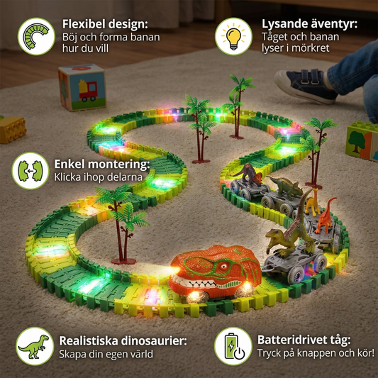 Dinosaurieäventyr – Flexibel racerbana med lysande tåg