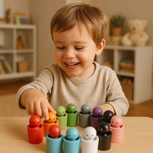 Färgmatchningsleksak i trä för barn | Sorteringsspel med pinndockor och koppar för finmotorisk och visuell inlärning