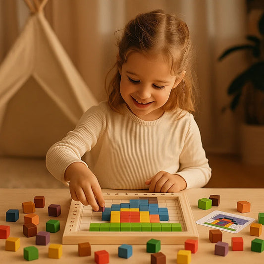 Pixelpussel i trä för barn | Block för färgsortering med rutnätstavla för logik och mönstermatchning