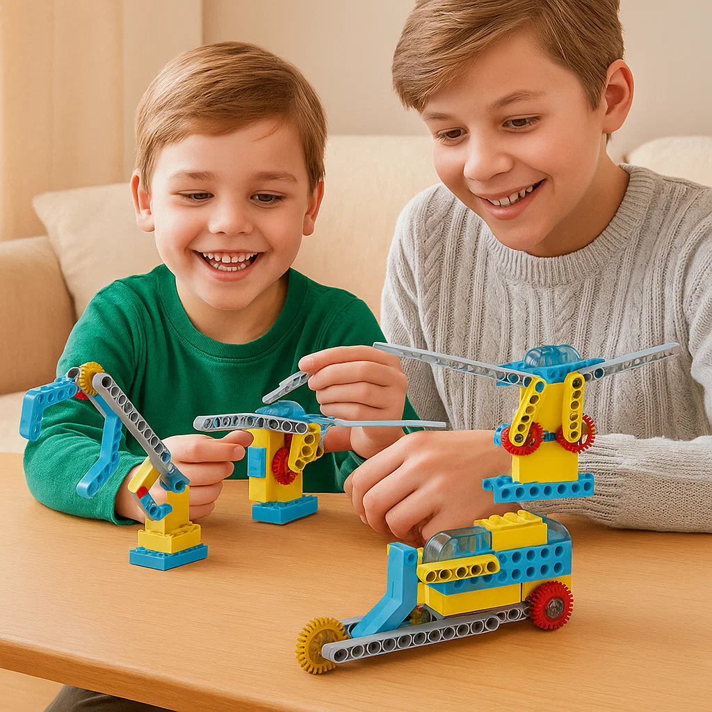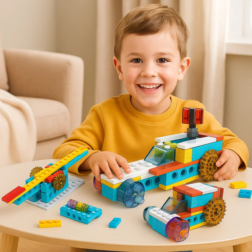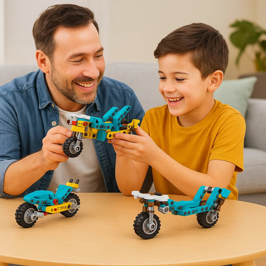 "Mitt barn älskar det här byggsetet! Han kan bygga olika modeller och lär sig samtidigt hur saker fungerar. Det är både roligt och lärorikt – perfekt för nyfikna små uppfinnare."
