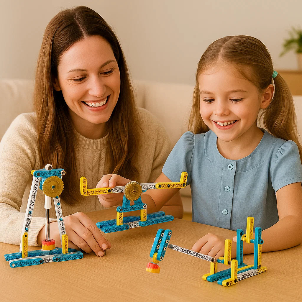 Setet inspirerar barn att experimentera självständigt och förstå tekniska principer. När de sätter ihop byggdelarna upptäcker de hur mekanik fungerar – och lär sig hur fascinerande vetenskap kan vara.