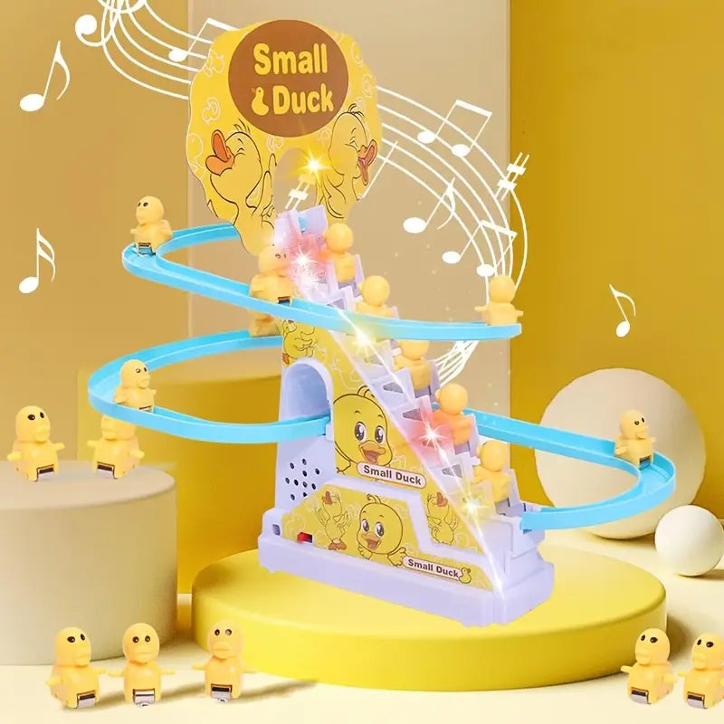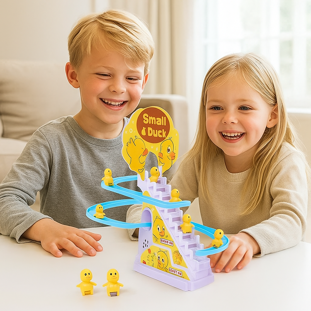 Den ankrutschbana leksaken ger rörelse, glädje och spänning till barnrummet! De små ankorna åker glatt nerför den färgglada banan, ackompanjerade av musik och ljus som får varje barn att skratta. Denna underhållande leksak främjar barns motorik, visuella uppfattning och nyfikenhet – en perfekt present som kombinerar lek och lärande på ett roligt sätt.
