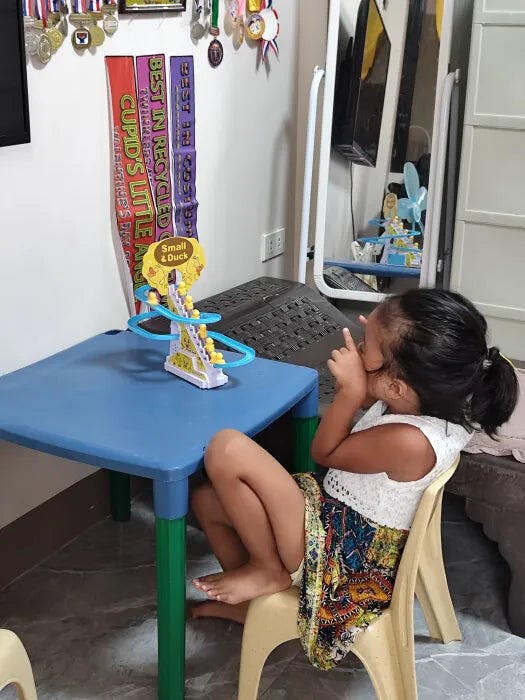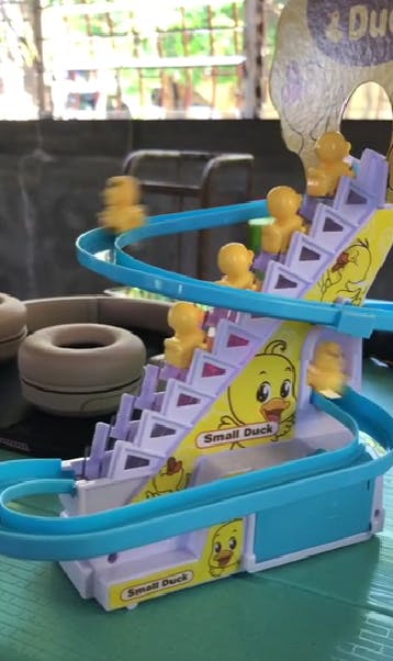 Den här leksaken är perfekt för barn. Min son tycker att det är roligt att titta på ankorna åka ner för backen.