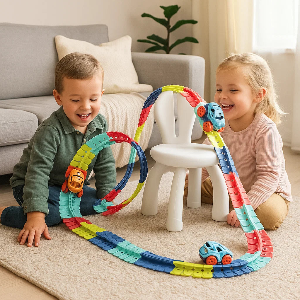Upptäck gravitationens magi med vår antigravitations racerbana! De färgglada delarna kan kopplas ihop på otaliga sätt för att skapa broar, loopar och kurvor där bilen susar fram i full fart – till och med upp och ner! En perfekt leksak som utvecklar barns kreativitet, logiskt tänkande och motoriska färdigheter.
