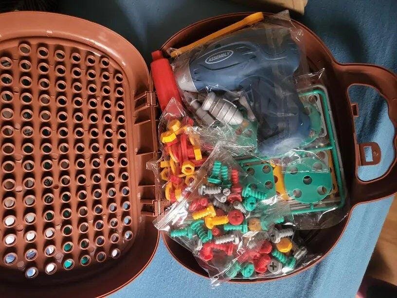 Min dotter blev överlycklig över att ha sin egen lilla verktygslåda. Hon sitter länge och bygger fantasifulla figurer.