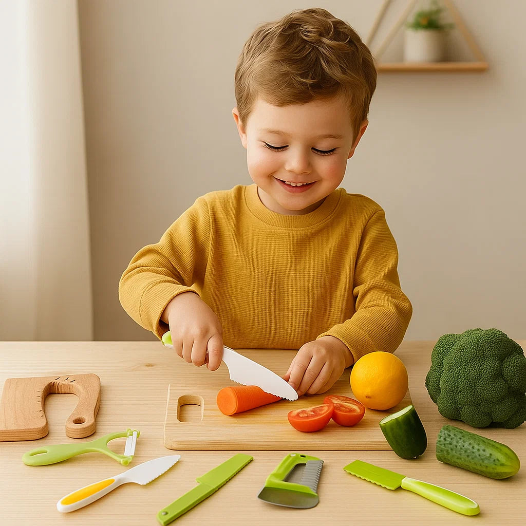 Med varje skiva och skärning bygger ditt barn upp koordination, självförtroende och en positiv relation till hälsosam mat. Det här setet är inte bara till för matlagning - det är till för att lära sig, dela och växa tillsammans.