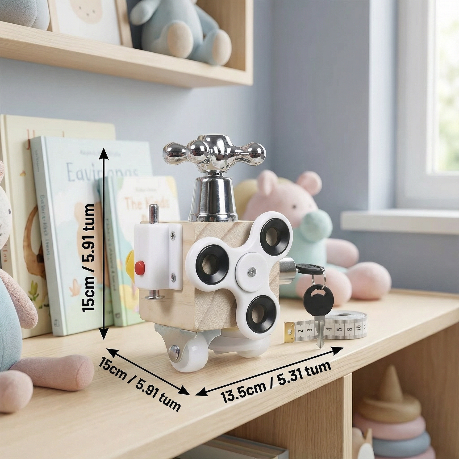 Sensorisk kub med flera aktiviteter är den ultimata leksaken för praktiskt lärande som är utformad för att väcka kreativitet, nyfikenhet och problemlösningsförmåga hos både barn och vuxna. Med sin unika kombination av brytare, knappar, snurror och interaktiva delar förvandlar den här kuben vardagens utforskande till en rolig och engagerande upplevelse.