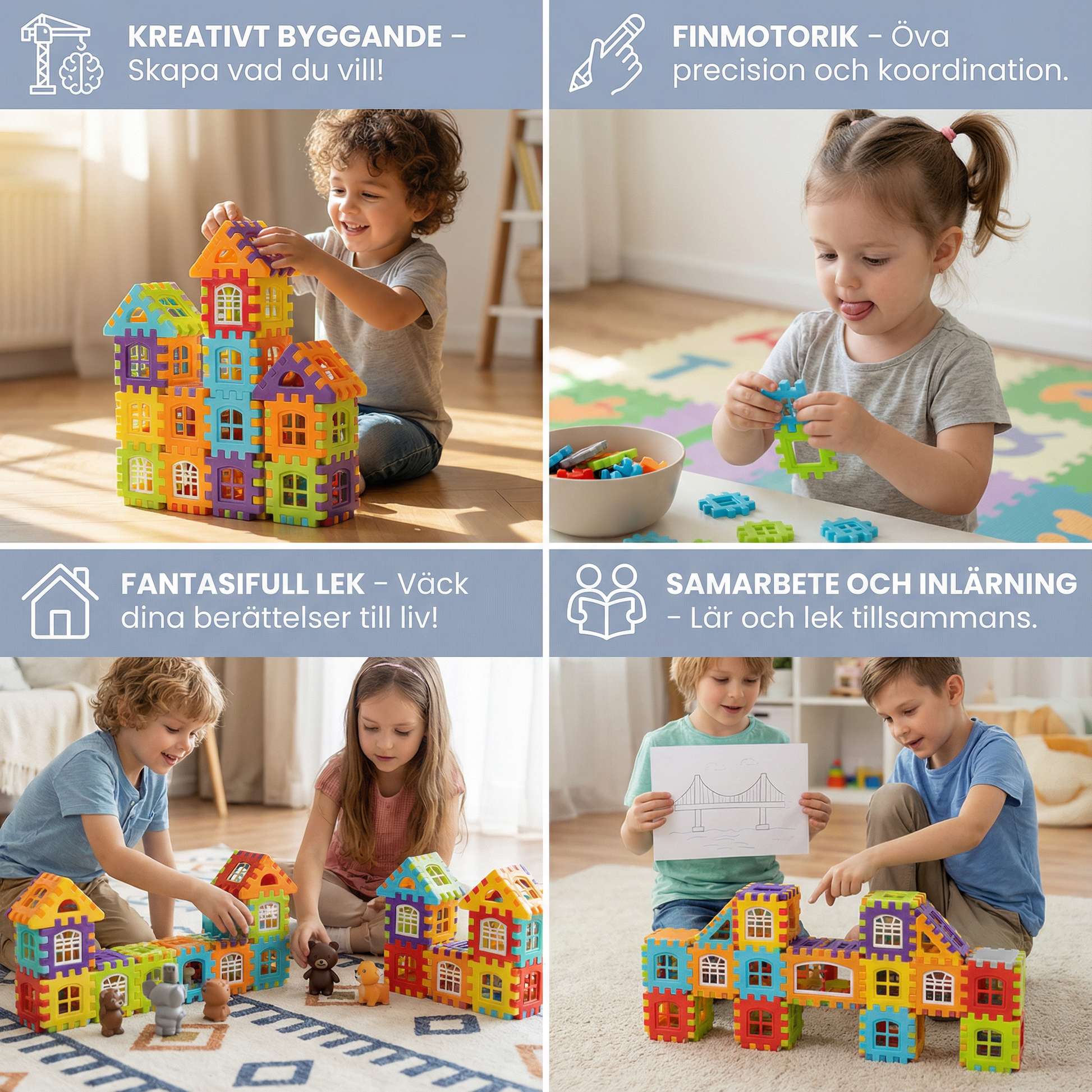 - 🧠 Främjar problemlösning: Varje bygge stärker det logiska tänkandet, rumsuppfattningen och förmågan att fatta beslut på ett engagerande sätt.