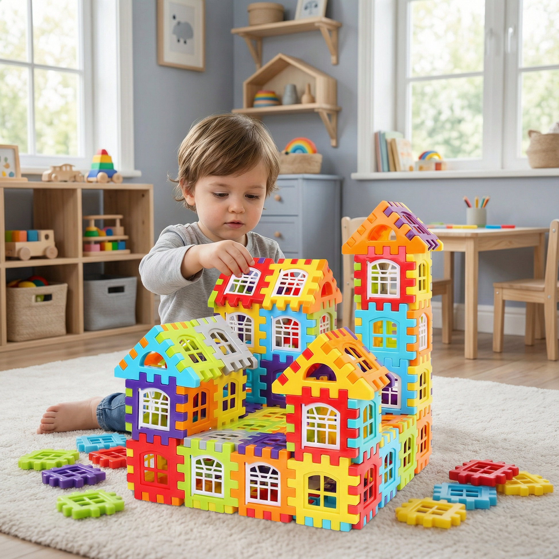 Med hållbara delar och mångsidiga fönsterkomponenter kan barn bygga allt från mysiga stugor till stora torn och uppmuntras att drömma större för varje bygge.