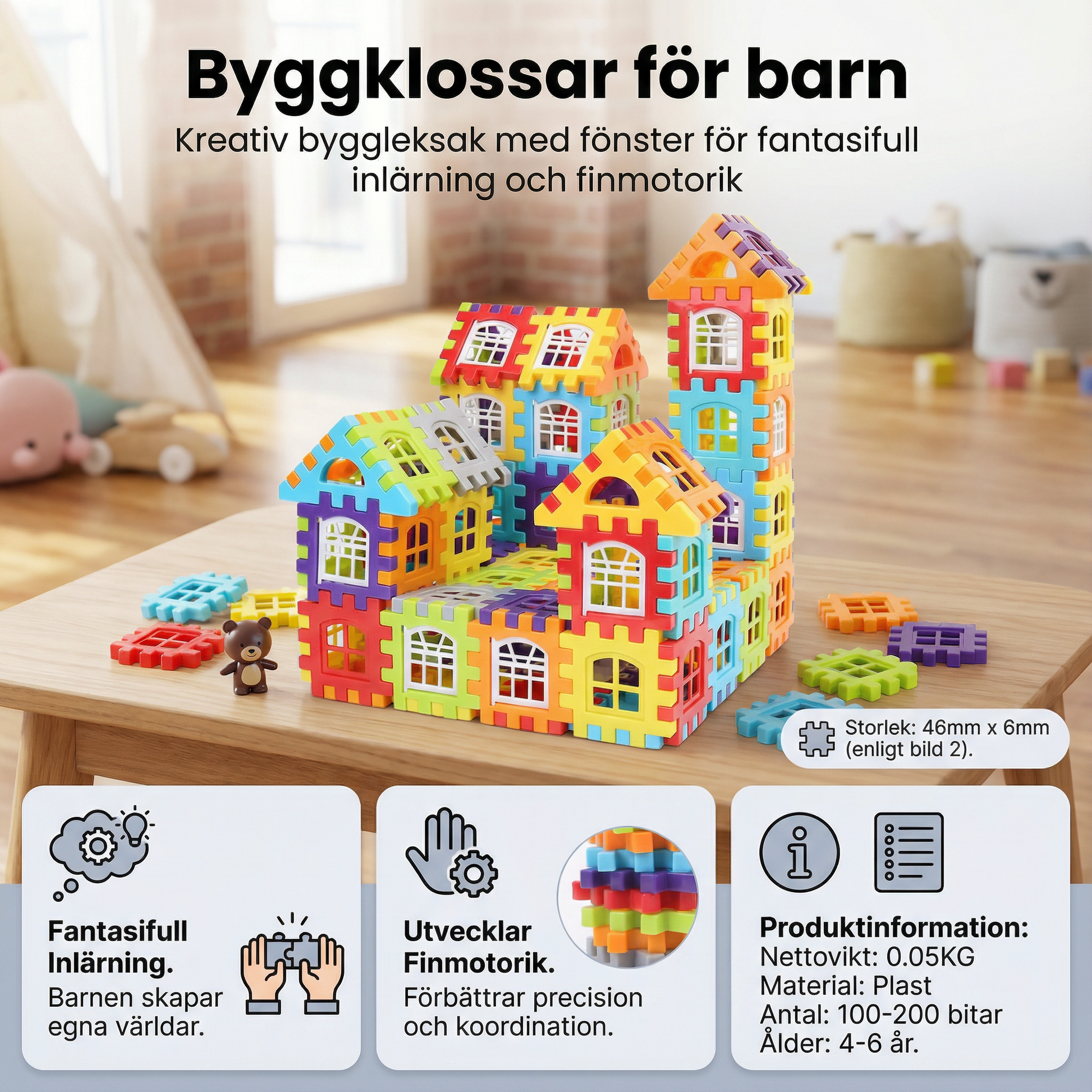 - 🏗 Stärker det kreativa självförtroendet: Barn lär sig att förverkliga sina djärvaste idéer genom att förvandla enkla klossar till fantasifulla mästerverk.