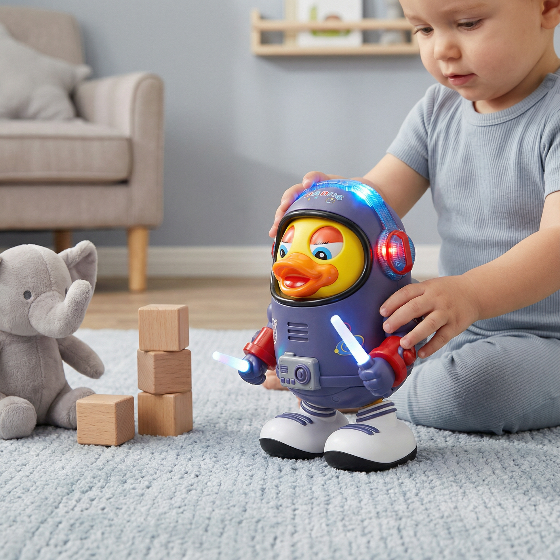 Den Dansande Astronautankan är den perfekta leksaken för alla barn som drömmer om spännande äventyr i rymden! Med sin unika dansstil och roliga astronautdräkt sprider den här lilla ankan inte bara leenden utan också massor av rörelse och glädje. Den rör sig rytmiskt till musiken och får barnens hjärtan att slå lite snabbare. Perfekt för nyfikna små upptäckare som älskar kreativ och lekfull inlärning!