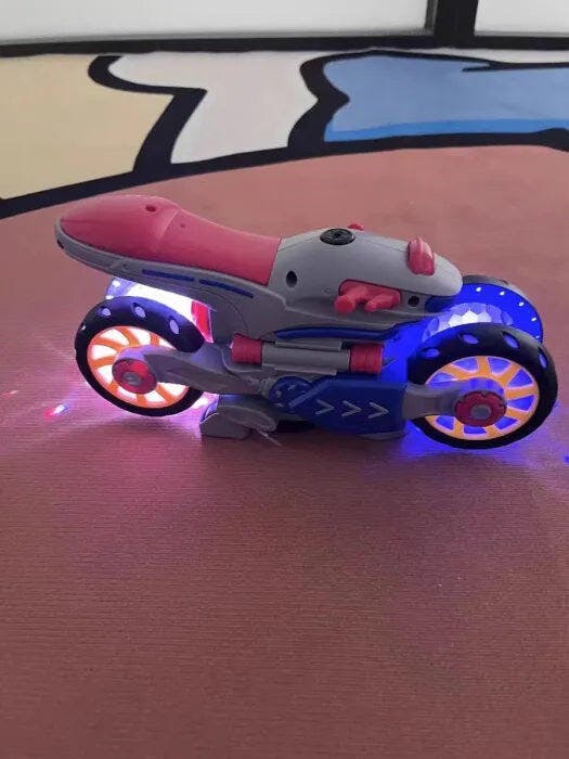 Denna motorcykel med ljus och musik är en hit hemma. Mina barn skrattar varje gång de ser den dansa.
