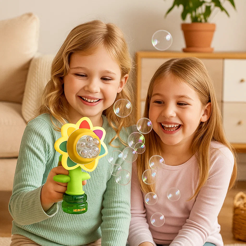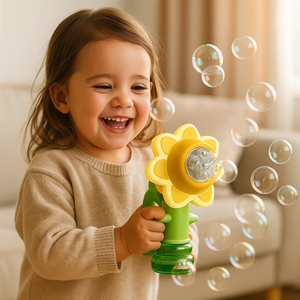"Min dotter älskar den här blomman! Hon skrattar varje gång bubblorna flyger omkring. En underbar leksak som gör varje dag lite magisk!"