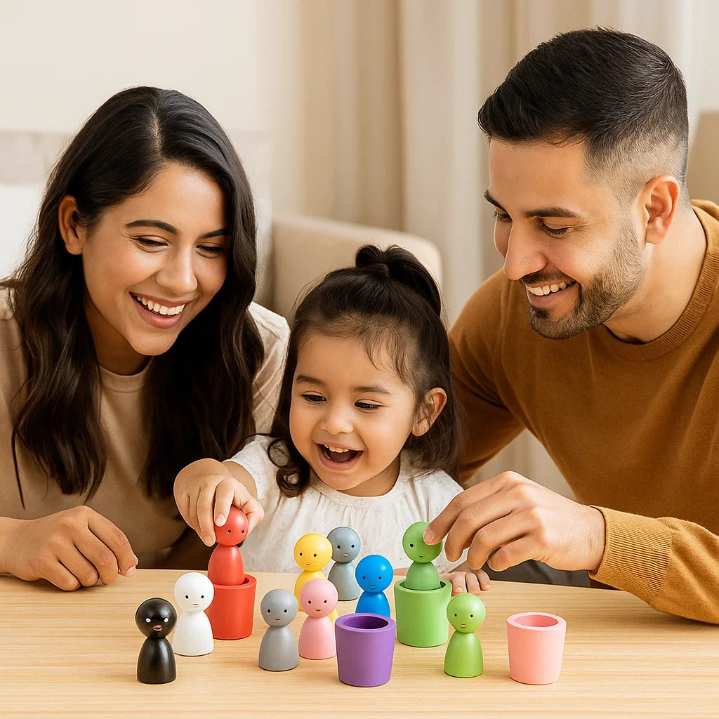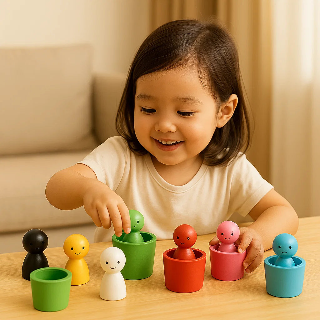 Glädja ditt barns sinnen och väck deras nyfikenhet med Färgmatchningsleksak av trä - ett roligt sorteringsspel som parar ihop glada pinndockor med deras matchande koppar. Denna praktiska aktivitet är utformad för tidiga elever och stärker visuell perception, färgigenkänning och finmotorik genom öppen lek som uppmuntrar kreativitet och självständigt utforskande.