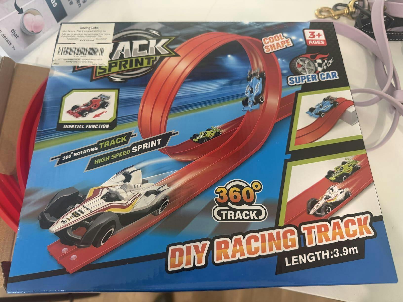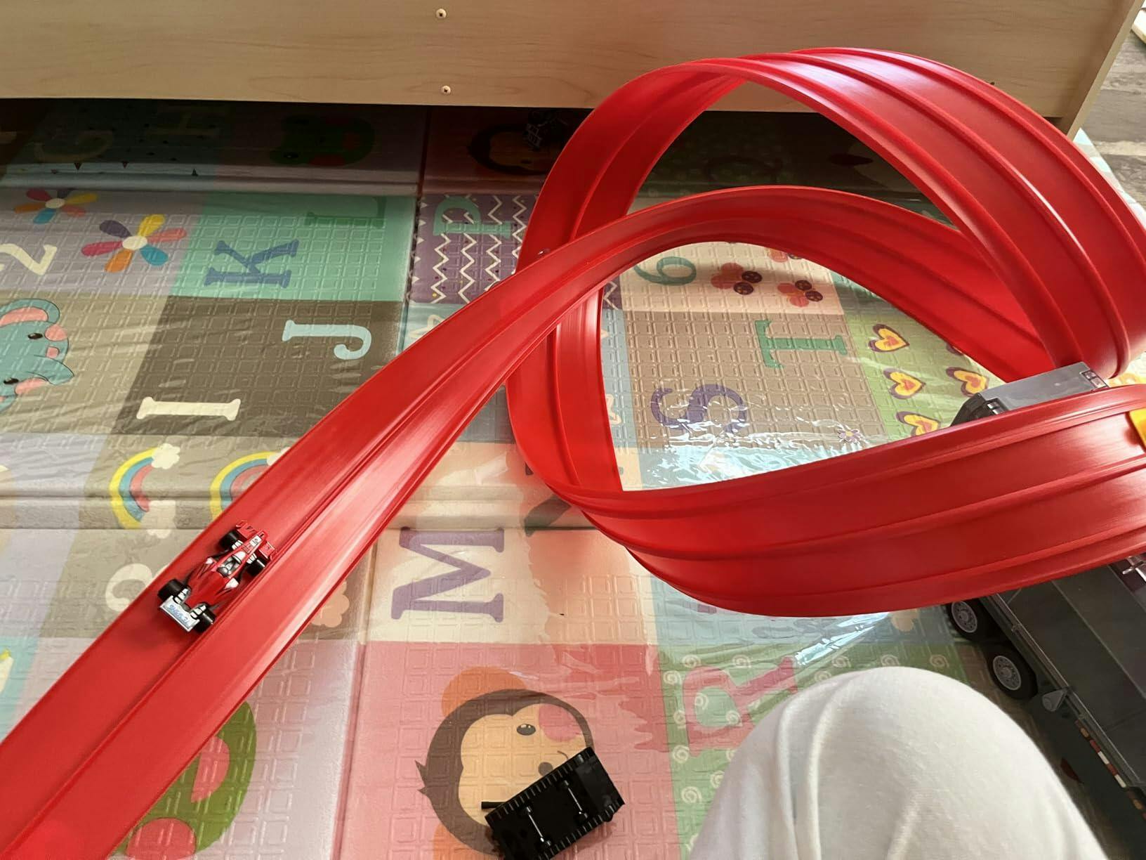 Min dotter blev så glad när hon fick racerbane-setet. Hon tävlar med sina små bilar varje dag.