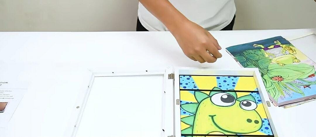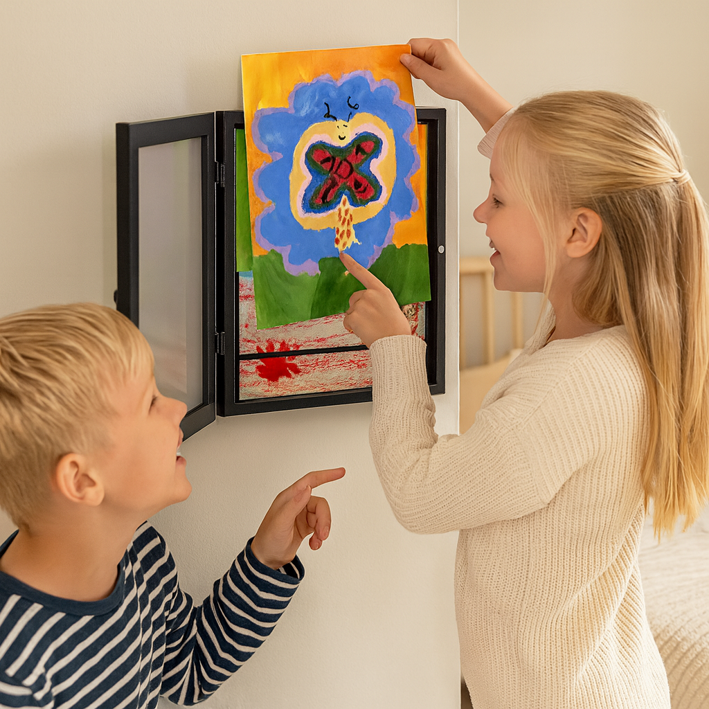 Med den här fotoramen blir det busenkelt att få ordning på det kreativa kaoset. Alla teckningar som tidigare låg utspridda i barnrummet får nu sin plats. Samtidigt kan du när som helst plocka fram en ny teckning längst fram utan att de äldre mästerverken försvinner. På så sätt blir varje konstverk uppskattat – oavsett hur gammalt det är.