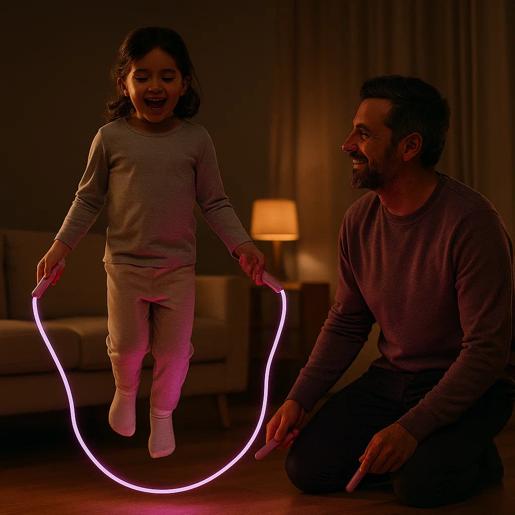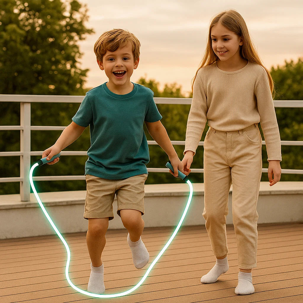 Kombinationen av ljus och rörelse gör att barn håller igång längre och får lust att vara fysiskt aktiva. Det gör hopprepet till en idealisk leksak för mer rörelse i vardagen – helt utan krav, men med massor av glädje.