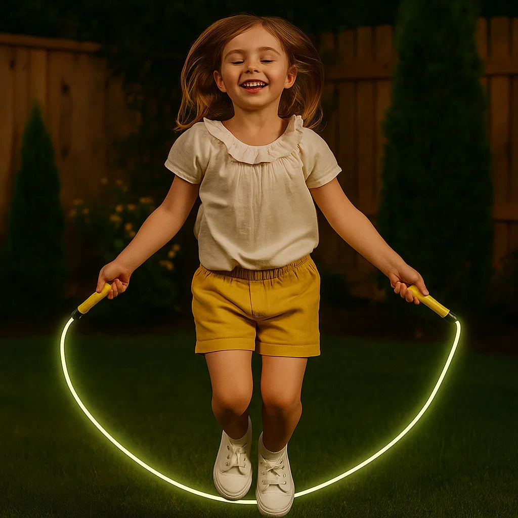 - 💡 Perfekt för både inne och ute, även i svagt ljus – tack vare LED-belysningen syns hopprepet bra i skymningen och ger extra säkerhet.