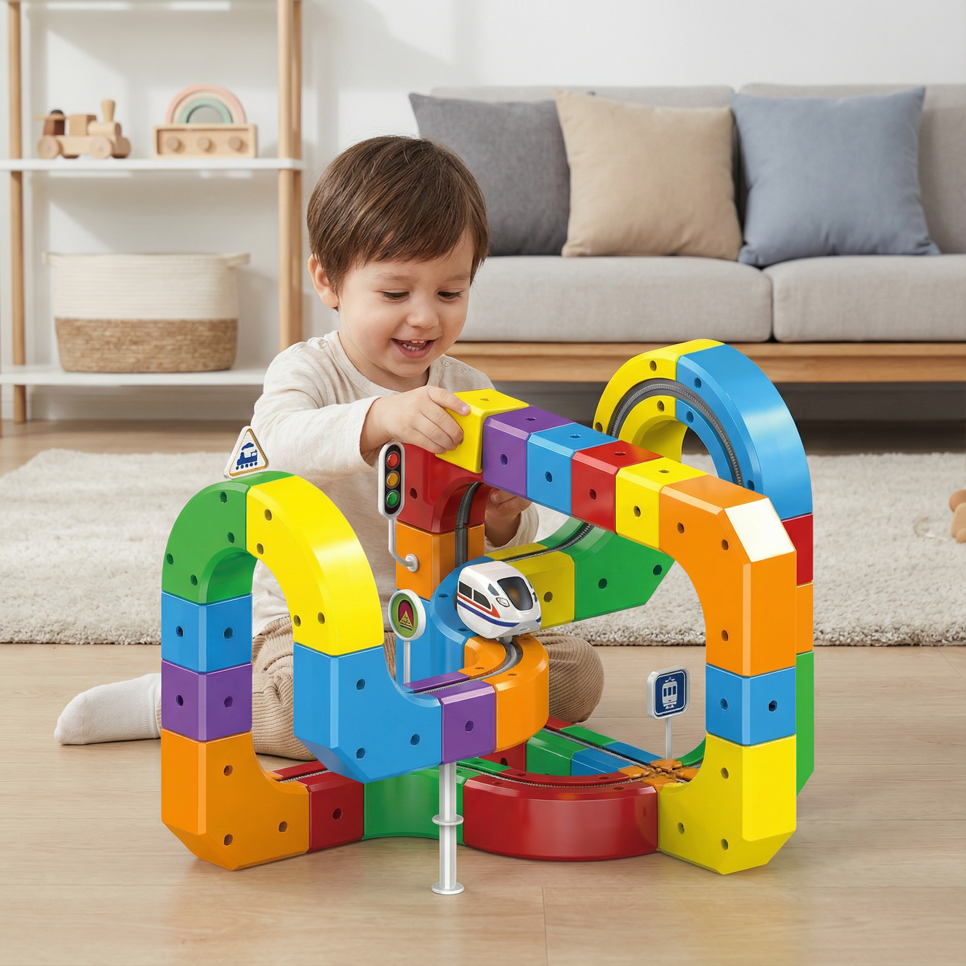 - 🧠 Främjar rumsligt tänkande och kreativitet: Barn lär sig på ett lekfullt sätt att planera, bygga och forma sina egna banor – perfekt för att stärka logiskt och kreativt tänkande.