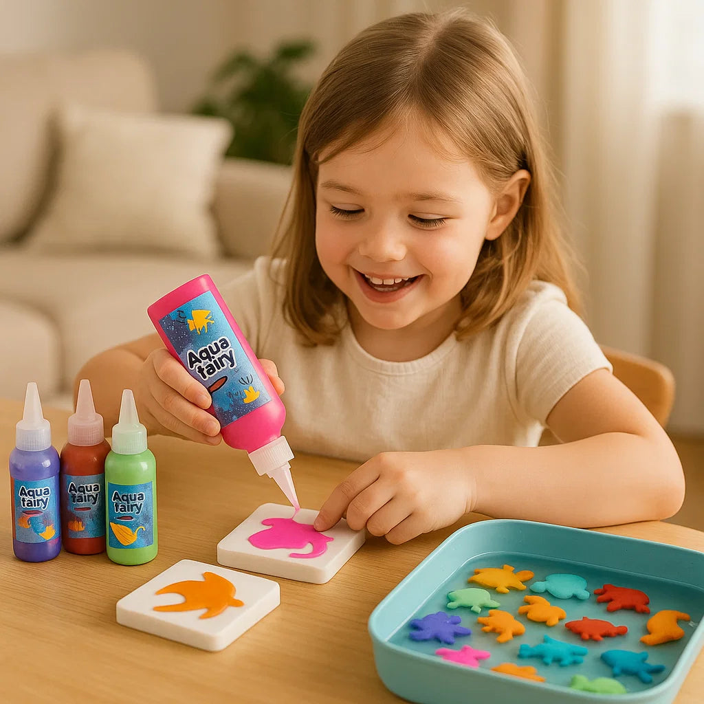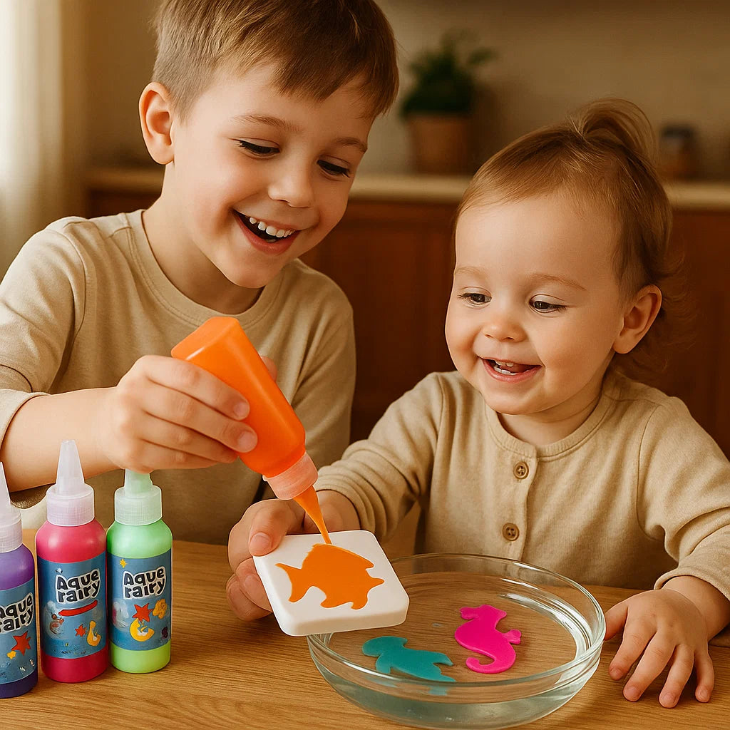 Frigör timmar av skoj med Magisk vattenleksak för barn & Kreativt DIY-set för att göra flytande djur i vatten. Denna färgglada och praktiska aktivitet låter barnen rita sina favorithavsdjur med hjälp av livfulla geléfärger och sedan se hur deras skapelser kommer till liv och flyter i vattnet. Perfekt för inomhuslek, familjesammanhållning eller kreativt lärande, detta set förvandlar enkel lektid till ett spännande DIY-äventyr.