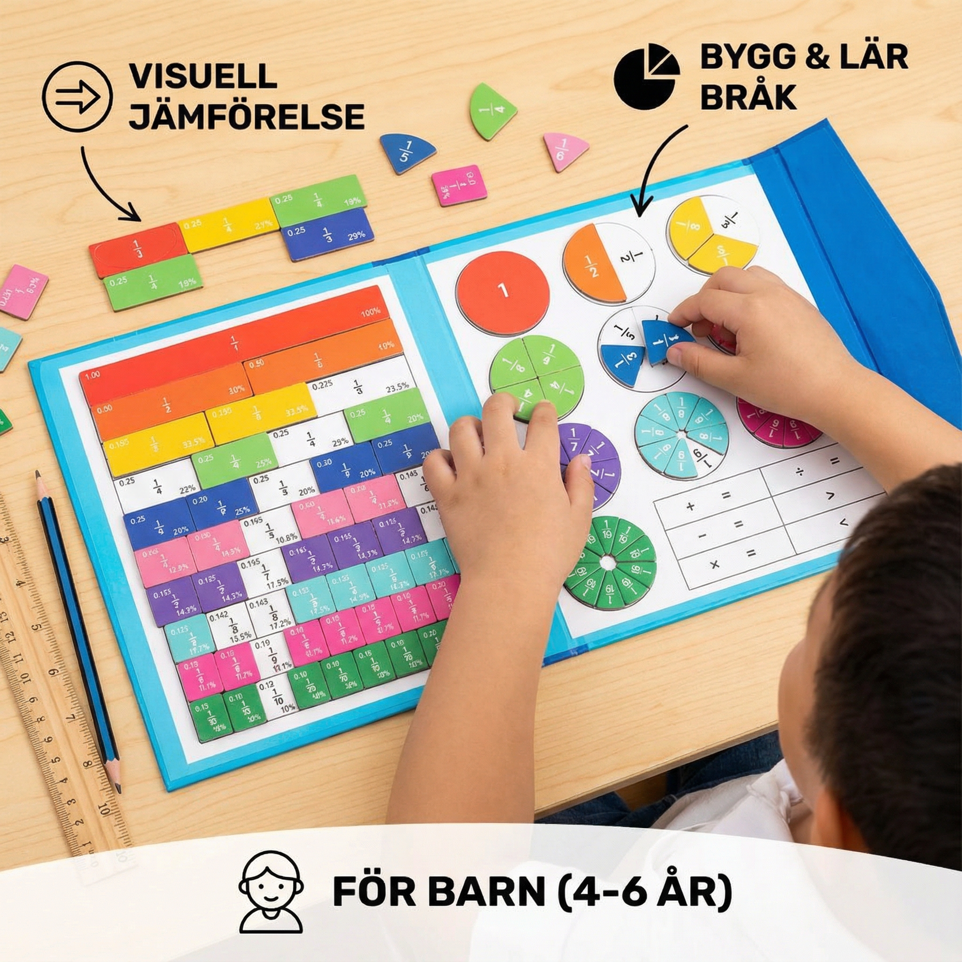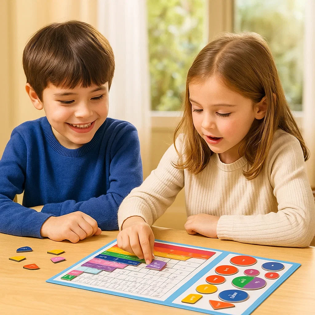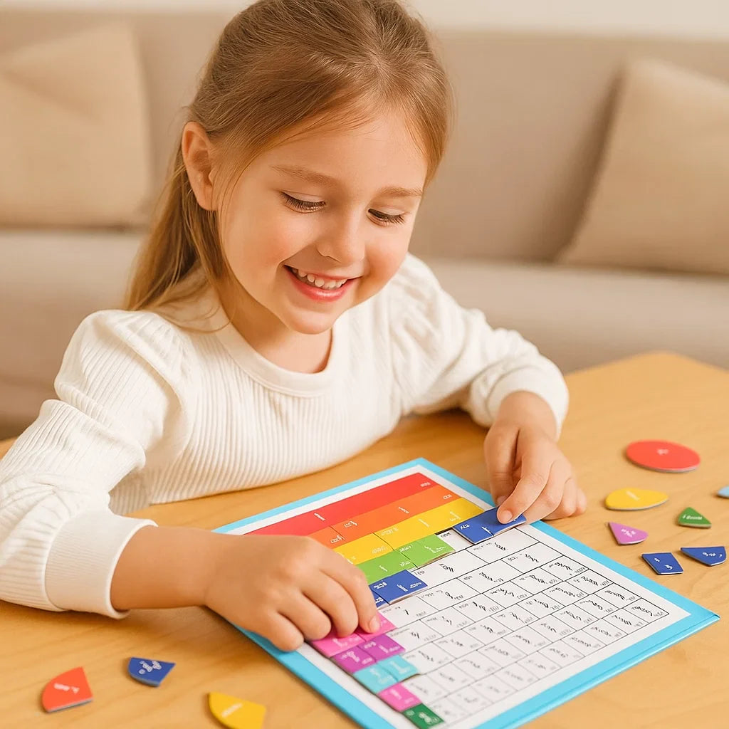 Genom att kombinera lek med problemlösning lägger det här verktyget grunden för ett livslångt självförtroende och nyfikenhet på matematik. De tydliga, praktiska bilderna gör det lättare för barn att förstå bråk, operationer och relationer mellan tal. I takt med att de utvecklas behärskar de inte bara grundläggande begrepp utan bygger också upp ett kritiskt tänkande som de kommer att ha nytta av i skolan och därefter. Den här tavlan är inte bara en leksak - den är en kraftfull språngbräda mot långsiktig akademisk framgång.