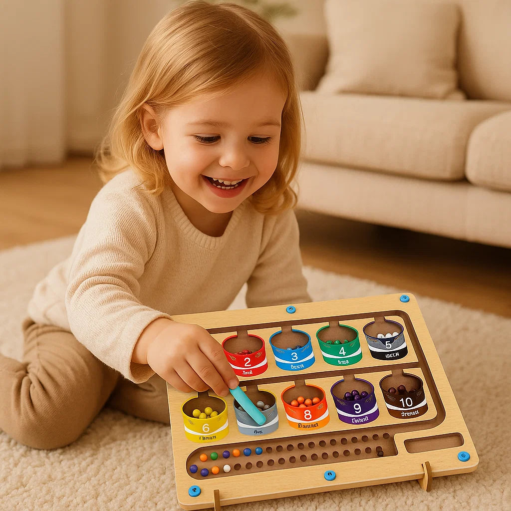Förvandla lek till en engagerande inlärningsupplevelse med den magnetiska räknebrädan i trä - ett pedagogiskt spel som bygger upp färgåterkänning, räknefärdigheter och handkoordination. Med hjälp av en magnetisk penna styr barnen färgglada pärlor till matchande hinkar, samtidigt som de utvecklar viktiga tidiga inlärningsförmågor genom lekfull utforskning.