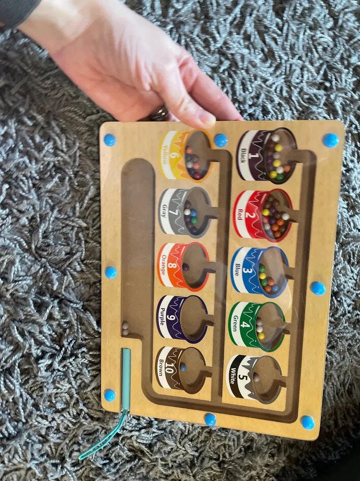 "Min dotter älskar absolut att använda magnetpennan för att flytta pärlorna, och det håller henne underhållen under lång tid. Den har varit fantastisk för att förbättra hennes greppstyrka och hjälpa henne att lära sig färger och siffror på samma gång. "