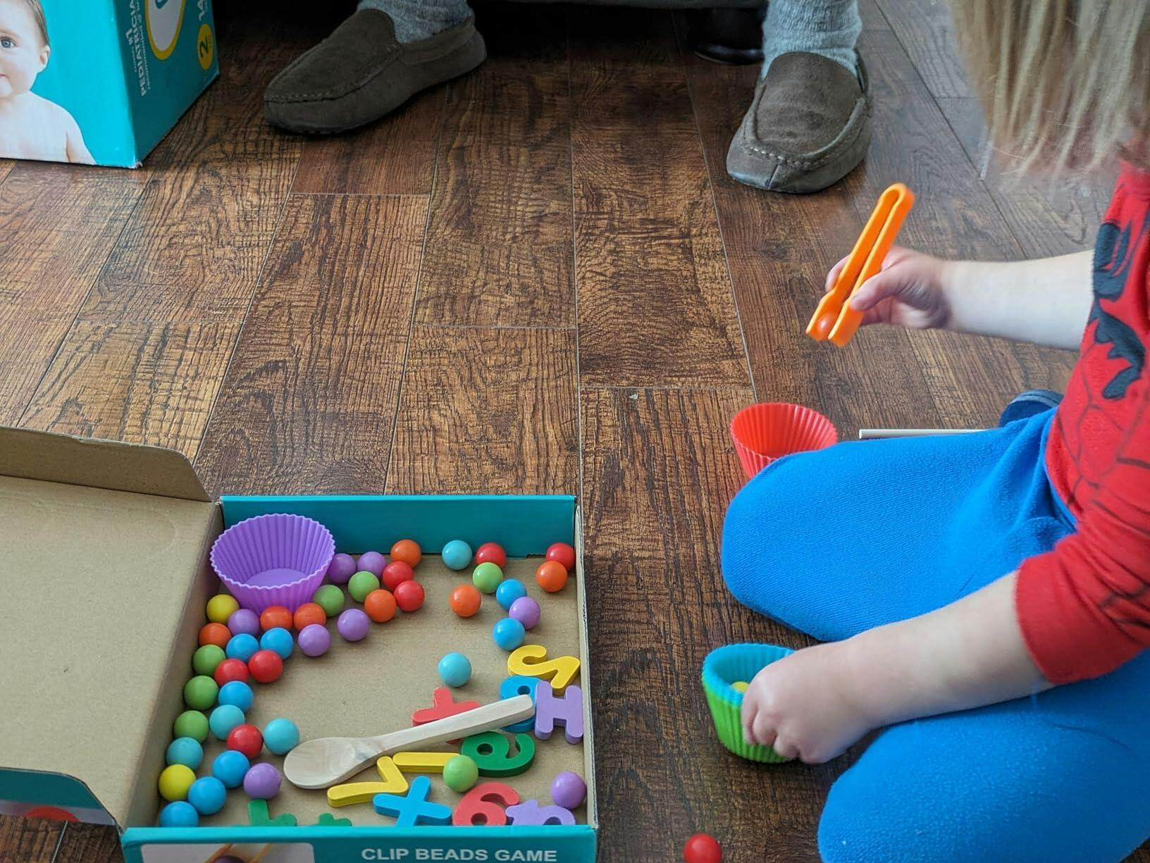 Pusselbitarna är precis rätt storlek för små händer, och mitt barn tycker om att matcha pärlorna. Det är ett roligt sätt att lära sig siffror.