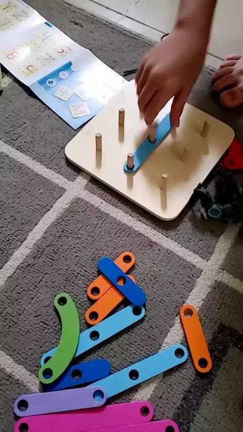 - 🖐️ Förbättrar finmotoriken: Att greppa, skjuta och placera pinnarna och bitarna förbättrar fingerfärdigheten och koordinationen mellan hand och öga.