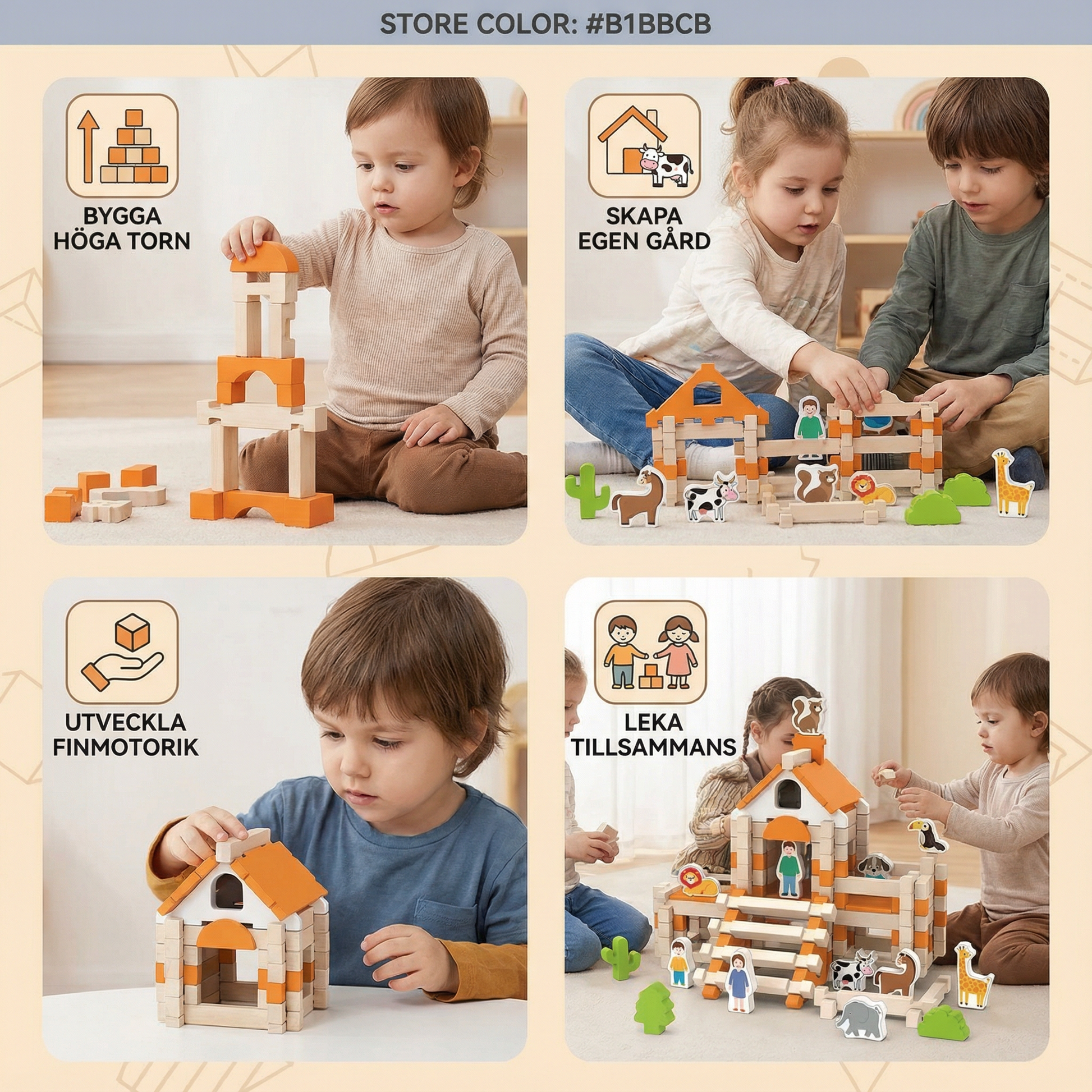 - 🧠 Främjar fokus och finmotorik: Barn utvecklar viktiga motoriska och kognitiva färdigheter genom att greppa, stapla och bygga.