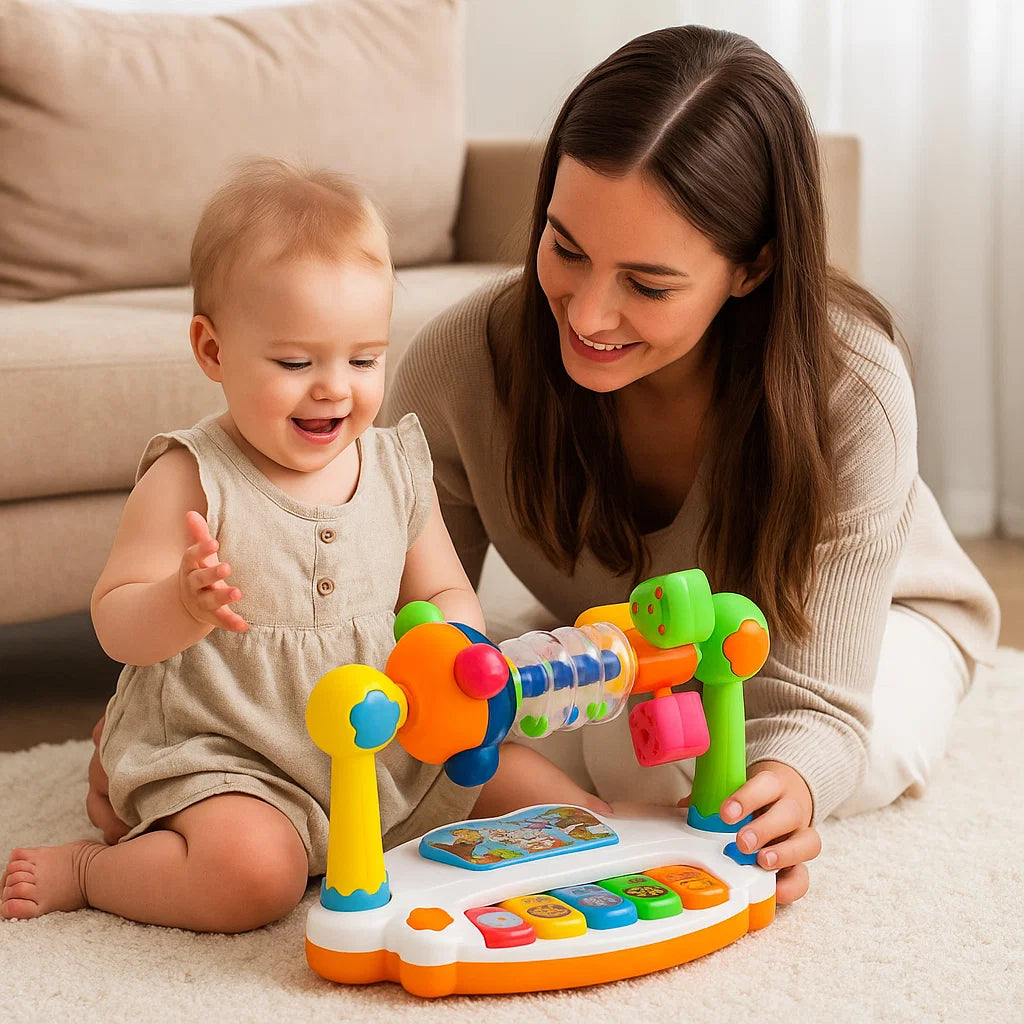 - 🎼 Främjar musikalisk hörsel – Olika toner och melodier stimulerar den akustiska uppfattningen och låter bebisar upptäcka musik på ett lekfullt sätt.