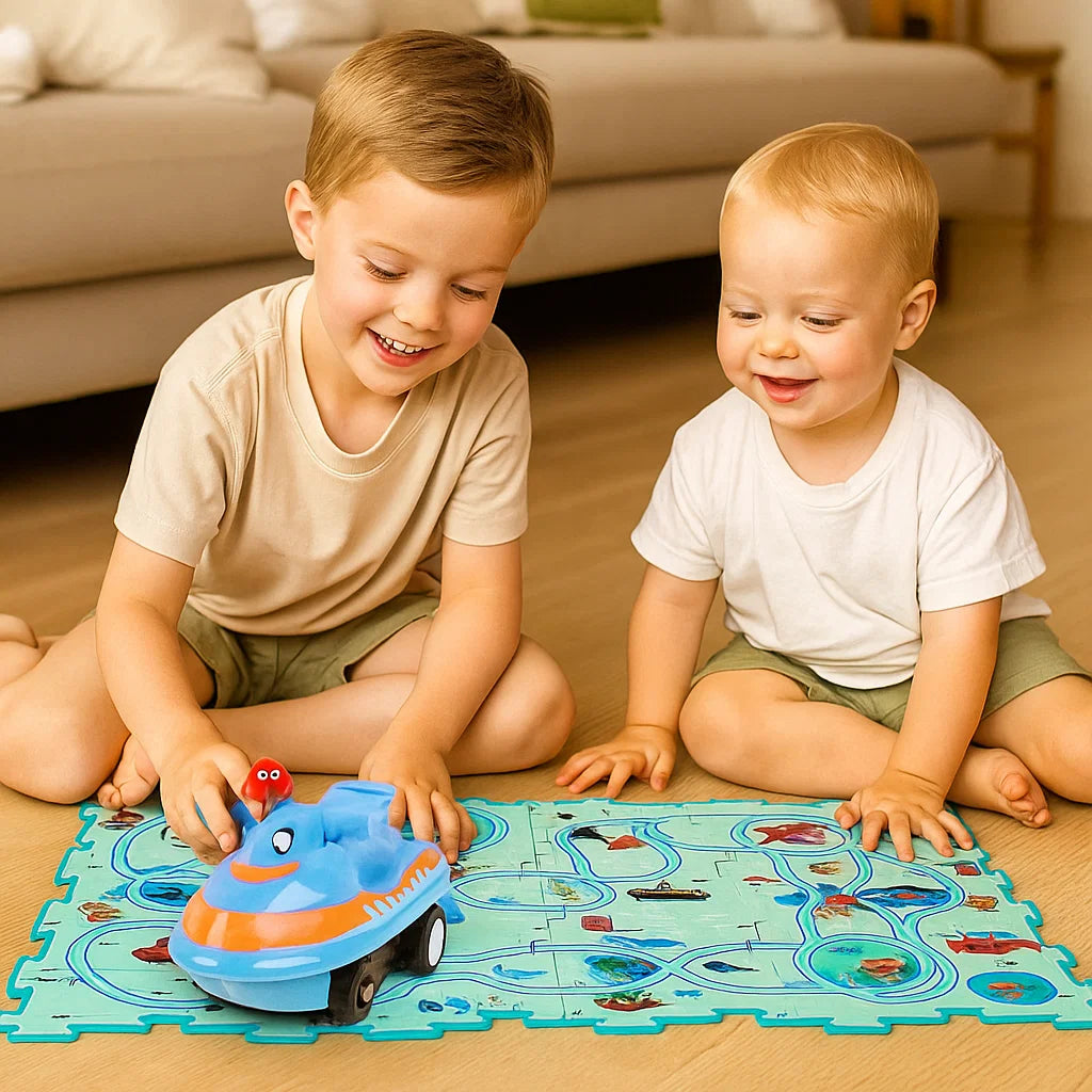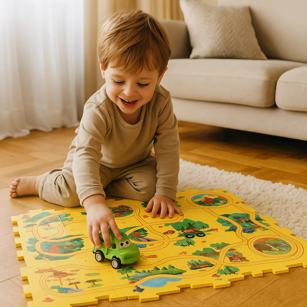 Förvandla ditt barns lektid till en spännande resa med Puzzle Track Play Mat för barn. Detta livliga och interaktiva golvspel inbjuder små racerförare att bygga, ansluta och utforska sina egna vägar samtidigt som det väcker kreativitet och hands-on-glädje.