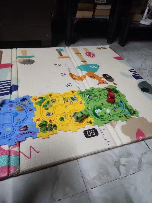 Vi köpte mattan till vår dotter och hon älskar att köra sina bilar på banorna. Hon bjuder gärna in kompisar för att leka tillsammans.
