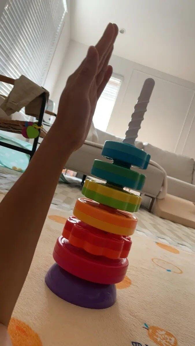 "Regnbågens snurr- och färgtorn är jättefint och mina barn leker med det varje dag. Samtidigt utvecklar de lekfullt motorik och färgförståelse."
