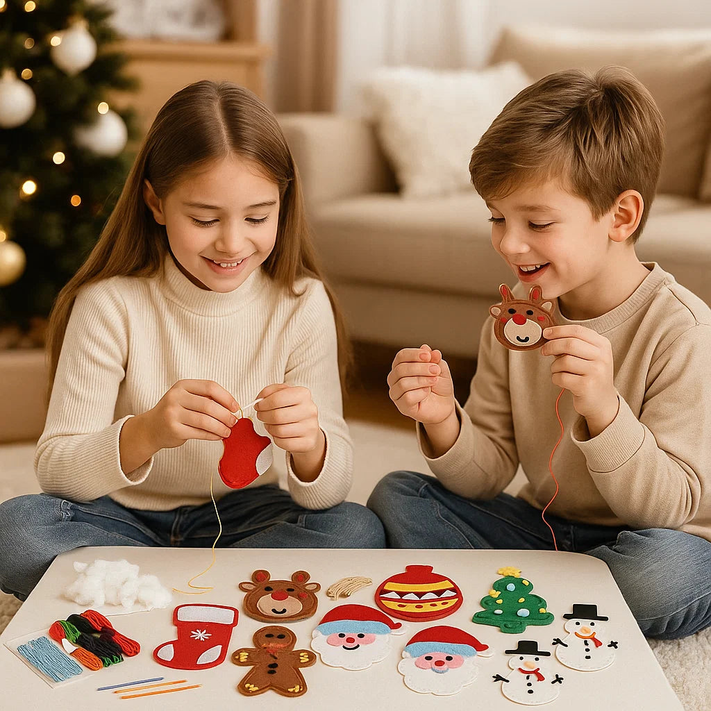 Detta set kombinerar praktiskt lärande med julstämning. Barnen övar tålamod och koncentration medan de på ett lekfullt sätt upptäcker hantverkets värld – en perfekt introduktion till skapandets glädje.