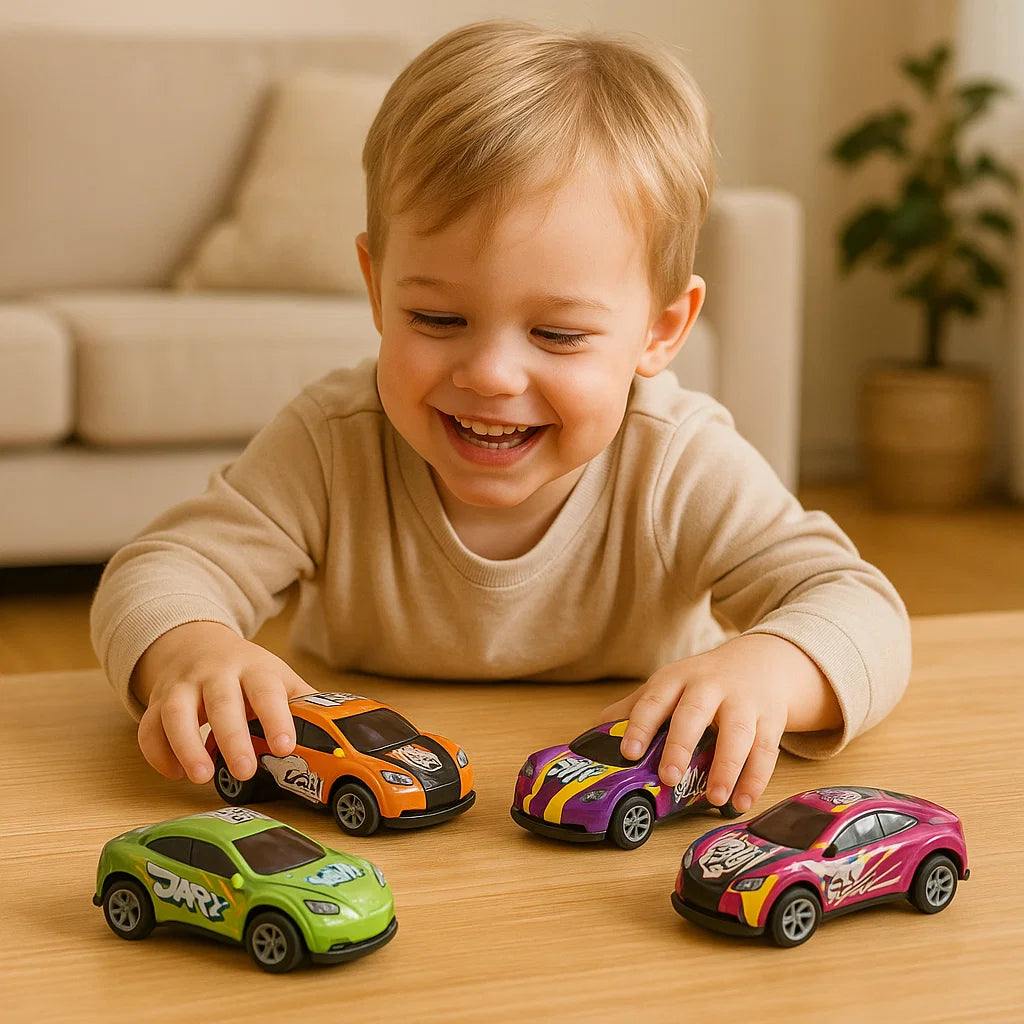 Gör dig redo för ett race fullt av överraskningar med akrobatbilar som kan hoppa, snurra och överraska varje gång! Ett lätt tryck räcker för att bilen ska flyga upp i luften och göra en imponerande volt. Den perfekta leksaken för barn som älskar fart, tävling och lite adrenalin – oändlig glädje garanterad!