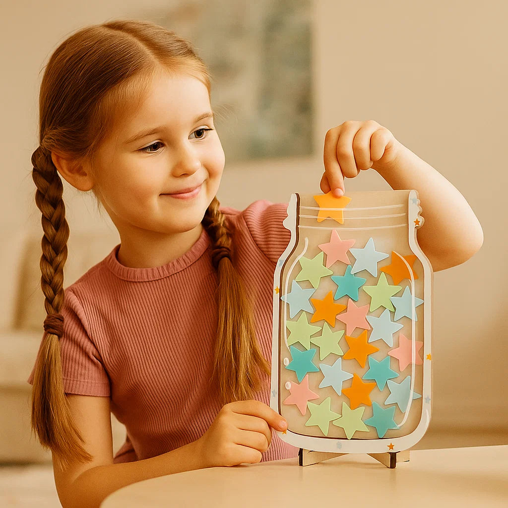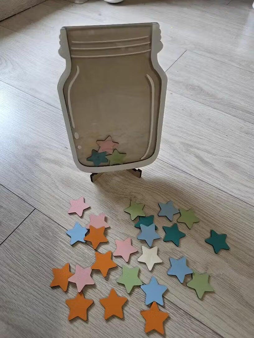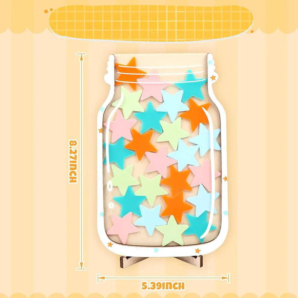 - 🎯 Ökar motivationen och självförtroendet: Varje färgglad stjärna är en visuell påminnelse om ansträngning och framgång, vilket bygger upp självkänslan med varje droppe i burken.